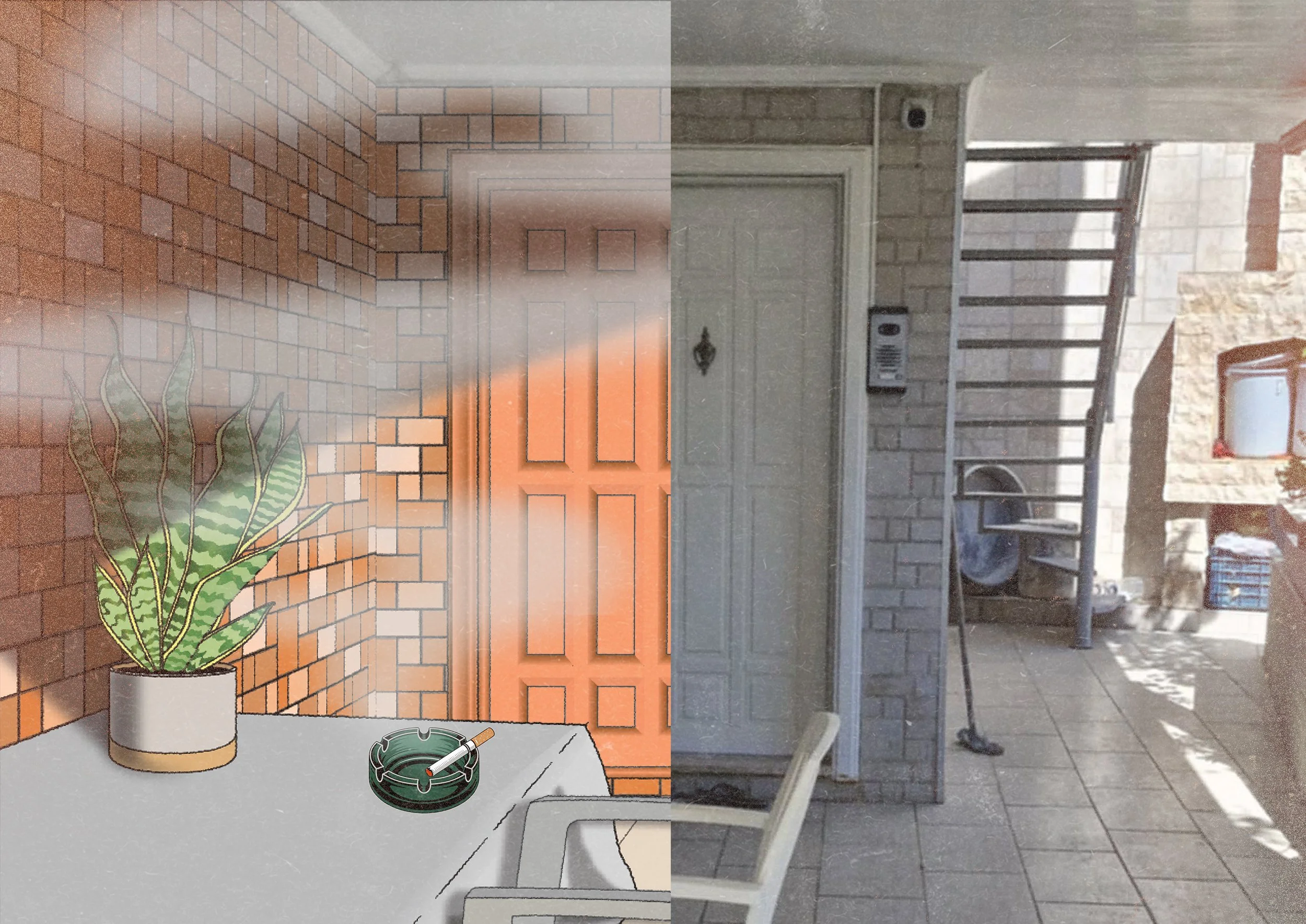 The film is created using hybrid animation, combining real photos, vector illustration, and frame-by-frame animation. The real photos ground the work in lived experience, representing concrete memories, while the animated elements convey how those memories feel, fragile, shifting, and emotionally charged rather than literal. This combination reflects how memory changes over time, how recollections are often imperfect, and how emotions from the past continue to shape the present. The phone call itself shapes the flow of the piece, with pauses, laughter, and moments of silence guiding the unfolding of memories. My process involved collecting family photos and sounds, sketching storyboards, and experimenting in After Effects to develop animated sequences that communicate the emotional truth of recollection rather than simply recreating events.